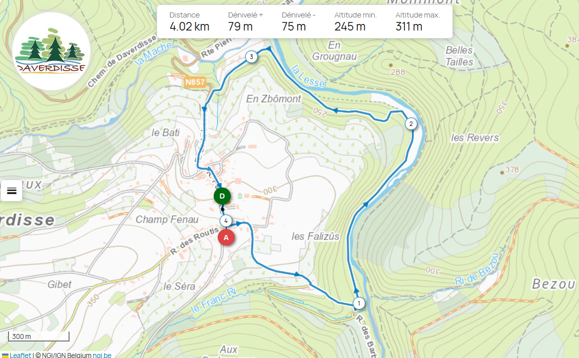 En rentrant au village, arrêtons-nous au Cimetière. C'est l'ancien cimetière des Seigneurs de Daverdisse. Le Château lui était contigu en contre-haut. En contrebas du cimetière coulait la Fontaine Saint-Pierre, invisible aujourd'hui parce que canalisée..