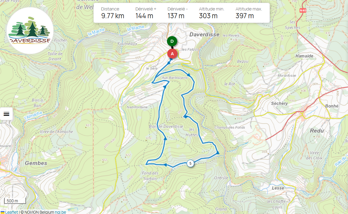 Une promenade qui pourrait s'appeler « Promenade des Ravins » : elle domine successivement le Franc Ri, la Lesse et le Chicheron.
