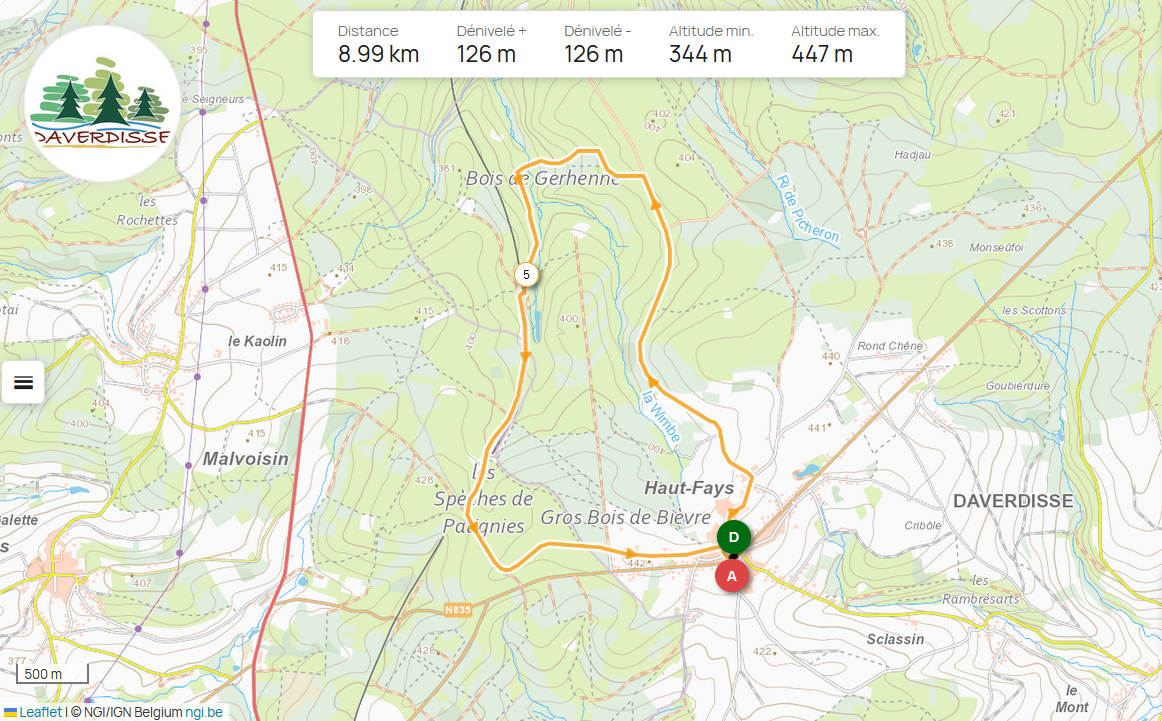 Un chemin descend vers la Wimbe qui prend sa source au pied de Haut-Fays. La Scierie Dartois fut construite en 1858 à l'emplacement d'une scierie plus ancienne. A la fin du 19e siècle, la scierie Dartois se plaçait en tête des scieries du cantonnement de Saint-Hubert. Elle fonctionna un siècle.