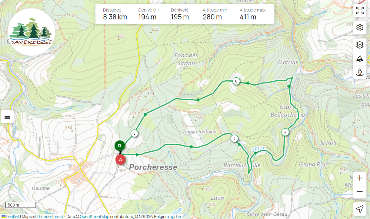Le promeneur d'autrefois aurait été bousculé par le trafic de bennes et de mulets qui partaient jusqu'en Gaume. Le chargement était du minerai de fer, exploité en Ardenne par les Gallo-romains. Ce gisement allait des Minîres aux pentes du Grinchi, en passant par le centre du village (les Fosses). Des habitants des rues de Redu et du Chenai ont trouvé des tronçons de galeries dans leurs jardins. A 100 mètres derrière la chapelle, dans une sapinière, une profonde dépression de terrain met à nu un sol rouge chargé de minerai. L'extraction se faisait encore à Porcheresse en 1926 pour les clouteries de Membre et de Sugny. Non loin d'ici, le Trou de Sable a fourni aux habitants le sable rouge qui rosit si curieusement le mortier des murs de beaucoup de maisons du village. La promenade s'engage, par un chemin commun à P2 et P3, dans une forêt essentiellement de résineux, Tinglanfontaine. En descendant vers l'Our, nous longeons sur la gauche le Bois de Lalou, partie de la terre de Lalou (voir P1).