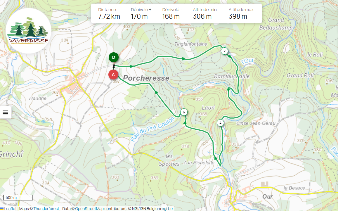 8 km – Parking et départ rue de Redu à Porcheresse, près de la Chapelle des Minîres.