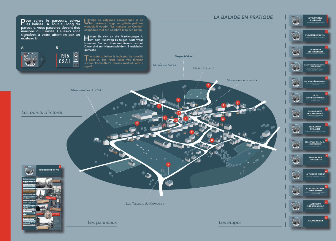 Aout 1914 : c'est le début de la Première Guerre Mondiale. Les troupes allemandes et françaises se battent dans le cadre de la bataille des frontières. Les allemands victorieux occuperont la Belgique pendant 50 mois douloureux pour les civils. Le village de Porcheresse est intentionnellement brulé dans sa quasi-totalité durant la nuit du 22 au 23 aout 1914.